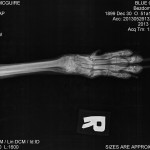 Today our new boy we have named Ricky arrived at our clinic. His tests so far show a crush type injury to the bones in his front foot, with the injury itself infected, so he has a high fever and raised blood cell counts, indicating he is fighting an infection. He is therefore having is treatment to wash the wound twice a day with an immobilization bandage each time until the bones heal.