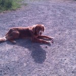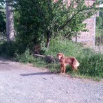 A few days ago we were asked to help with a young Irish Setter mix living on the streets of a small village. He has a seriously injured foot.