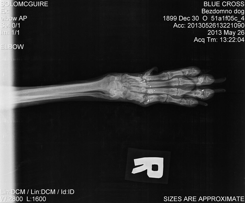Today our new boy we have named Ricky arrived at our clinic. His tests so far show a crush type injury to the bones in his front foot, with the injury itself infected, so he has a high fever and raised blood cell counts, indicating he is fighting an infection. He is therefore having is treatment to wash the wound twice a day with an immobilization bandage each time until the bones heal.