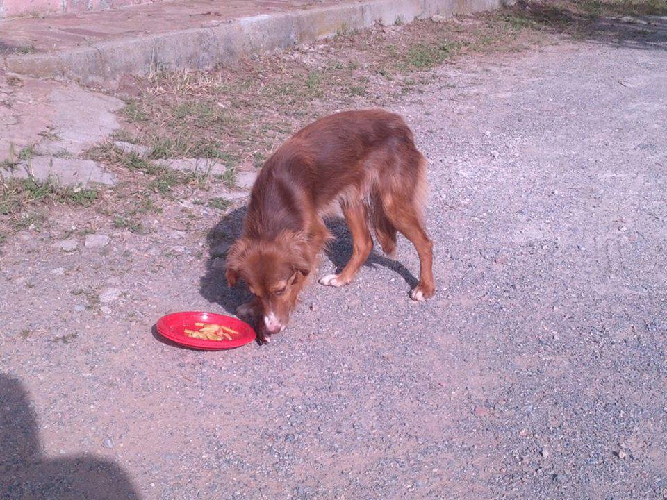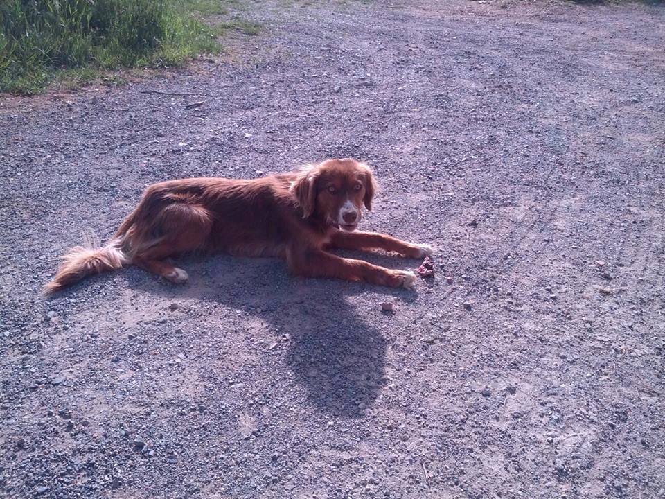 A few days ago we were asked to help with a young Irish Setter mix living on the streets of a small village. He has a seriously injured foot.